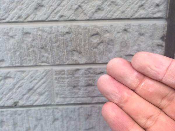 熱、紫外線、風、雨などのため塗膜が劣化し、塗膜表面が次第に粉状になっていく現象です。 この現象を放置しておくと外壁にヒビが入ったり、カビが生えたりと多くトラブルの原因となることがあります。